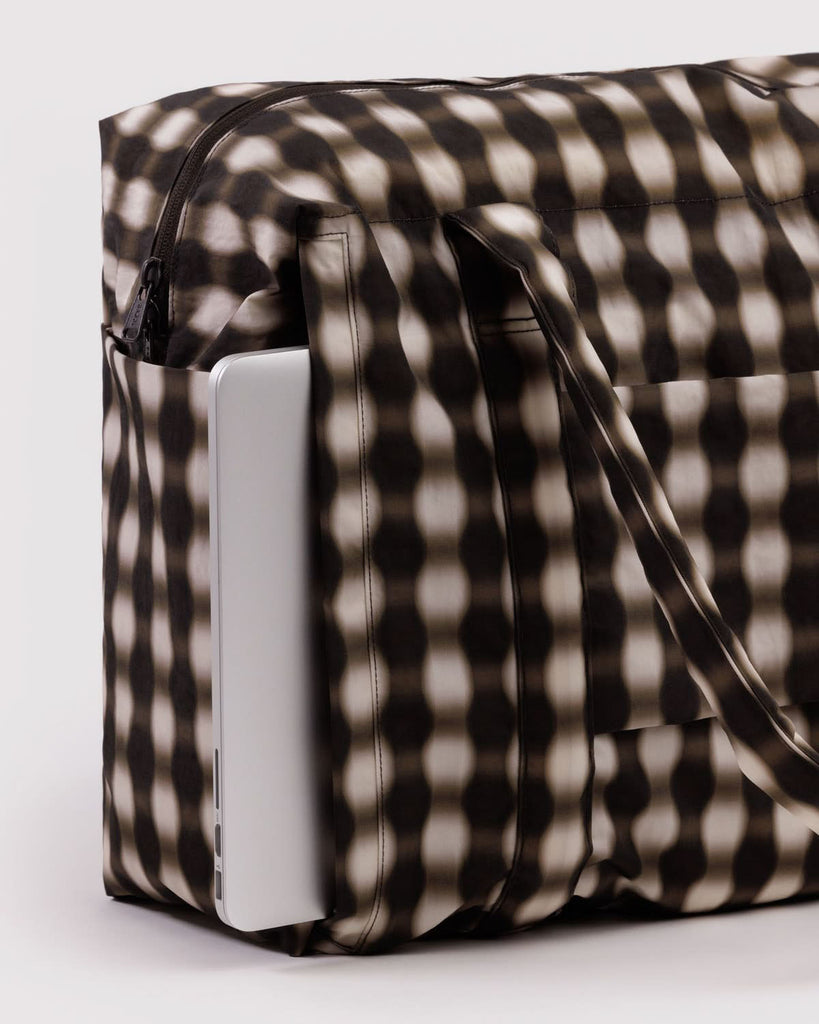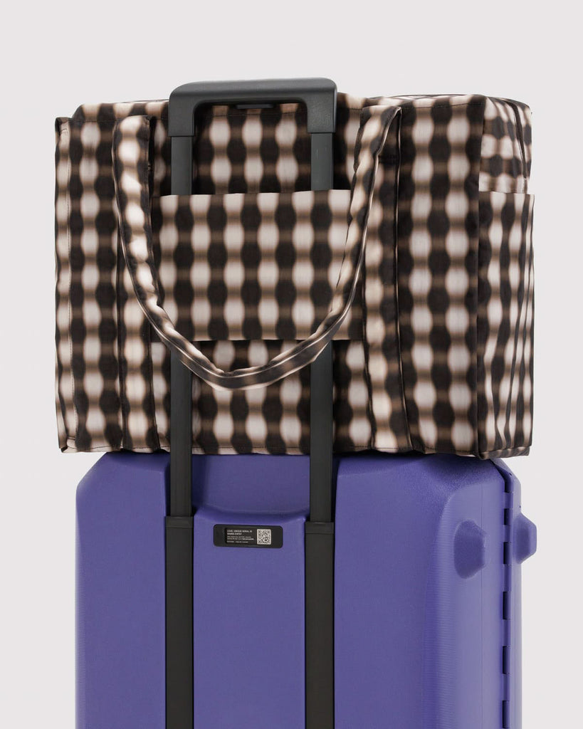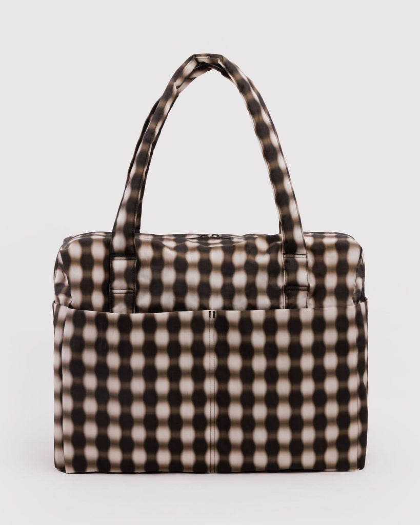 Personify Shopthe cloud carry-on from baggu is the bag to help you float away for a weekend… and maybe then some. it fits everything you need for a weekend away, happily rides on your roll-aboard, and stuffs easily into an overhead bin. take it on a trip, or let it take you on one. bag comes in a unique blurred brown gingham plaid.