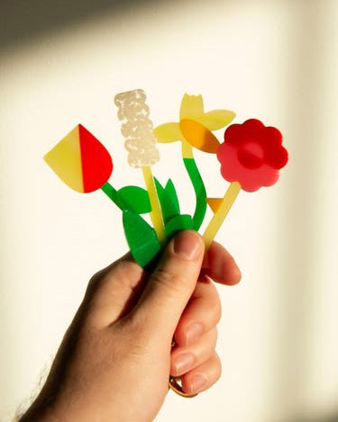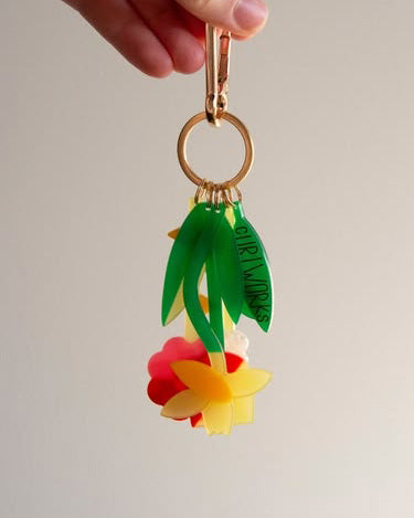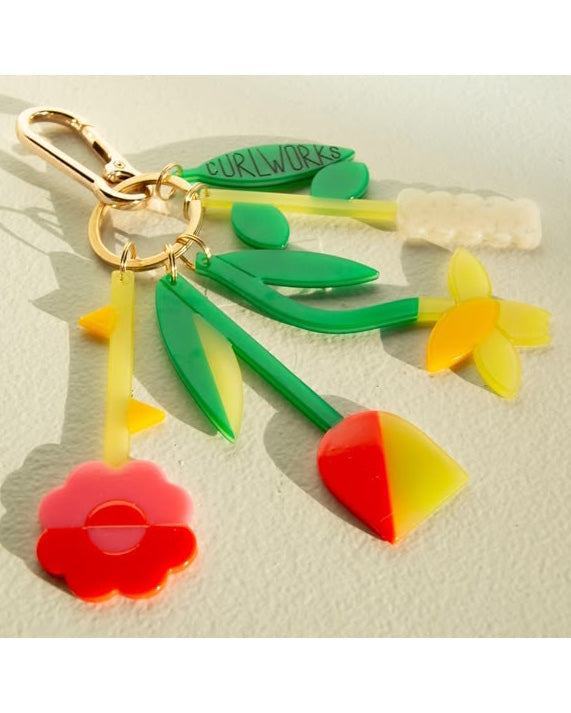 Personify Shopadd fun pops of color to your bag or keys with this adorable bag charm. bag charm features four vibrantly colored cellulose acetate flowers on a gold jump ring and carabiner. four split o-rings keep each flower's stem securely attached. use it as a bag charm, key finder, or fidget toy - how versatile!
