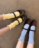 Personify Shopthese are a fun, flirty addition to your sock drawer! comfortable socks feature a light silicone grip along the sole for easy, stay-put wear. crew length and ruffled ankle bring a soft, playful finish, making them perfect for pairing with flats, clogs, or slides.