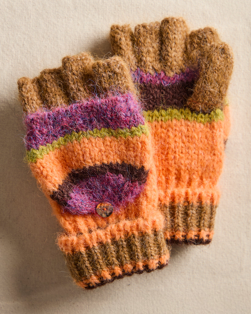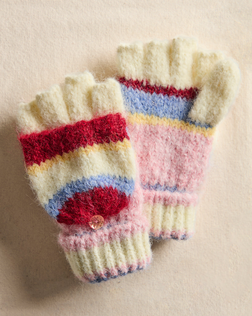 free people cute, cozy, and convertible gloves in a bold striped pattern. timeless gloves feature a fuzzy knit fabrication and fingerless design with an adjustable mitten-top cover, allowing for multiple ways to wear. warm wool blend gloves make a great gift!