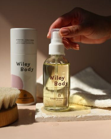 crafted from a skin-loving blend of lightweight, cold-pressed oils, the everywhere oil from wiley body is a multitasking essential for head-to-toe hydration. fast-absorbing formula leaves skin soft, smooth, and never greasy. oil is perfect for post-shower moisture or for targeting dry spots like elbows, cuticles, and heels. oil is completely unscented and gentle enough for the whole family.