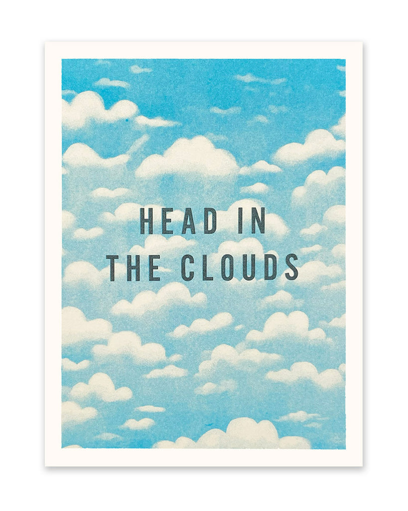Personify Shopadd a special touch to any space with this unique risograph art print. print features a bright blue sky with the message "head in the clouds." it makes a wonderful gift for any daydreamer.