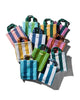 Personify Shopbeachy feeling tote bag covered in a colorful striped terry cloth material. unique bag is available in three fun stripe patterns.