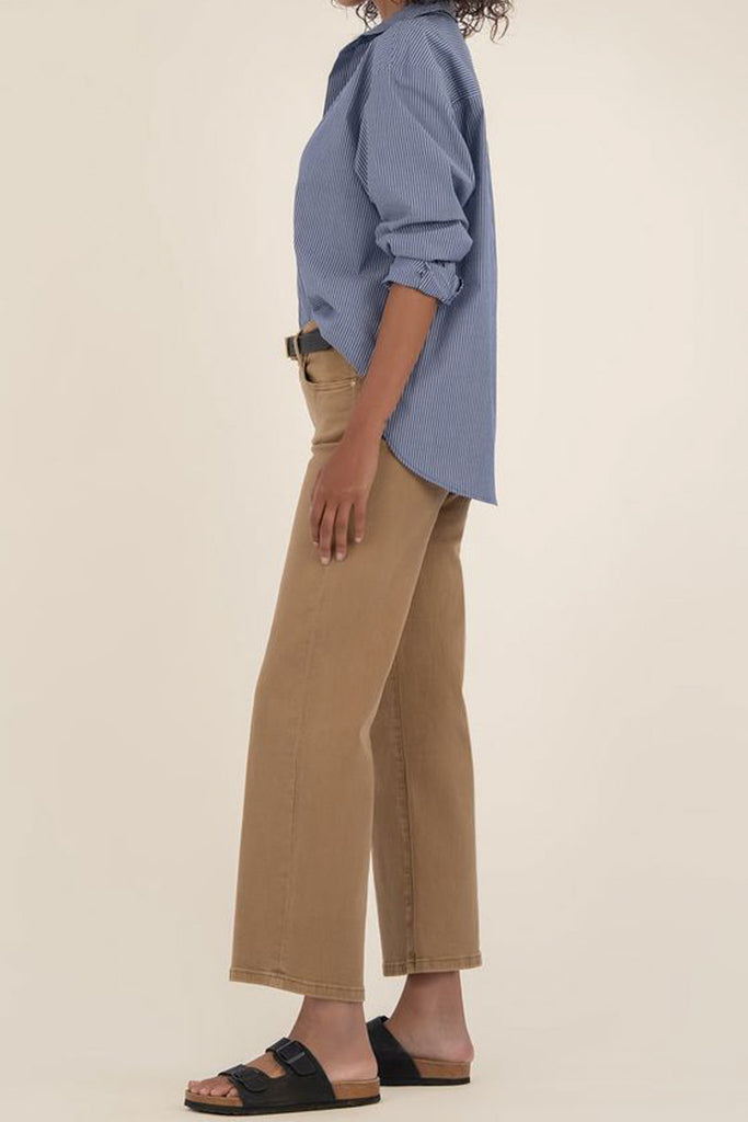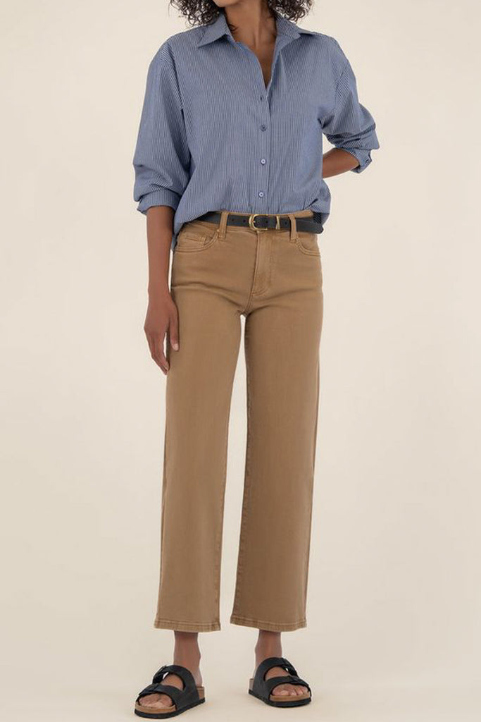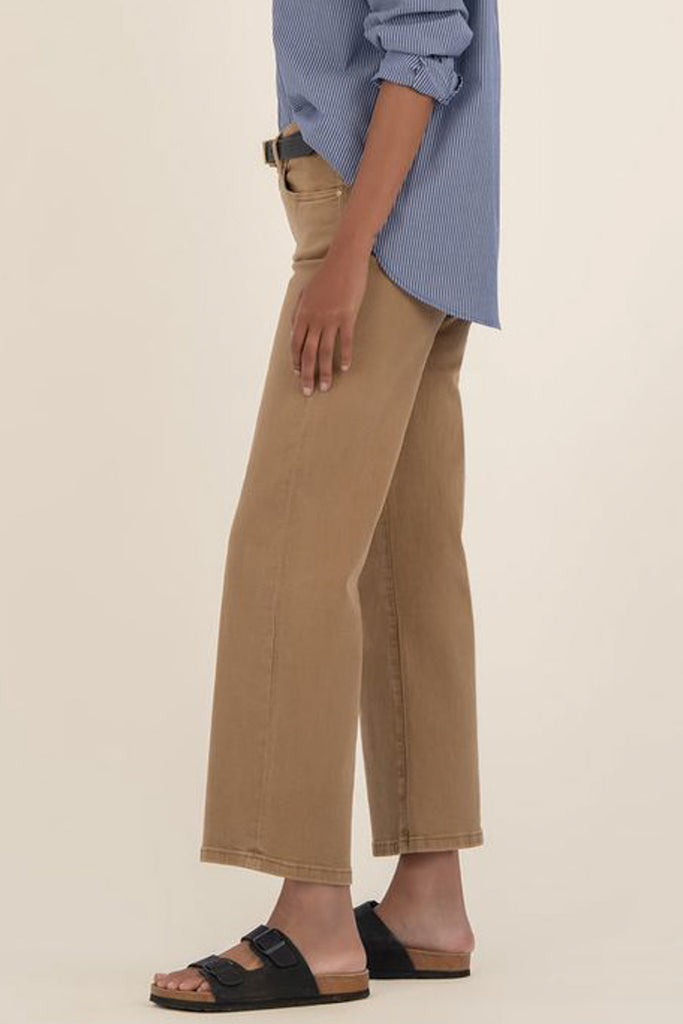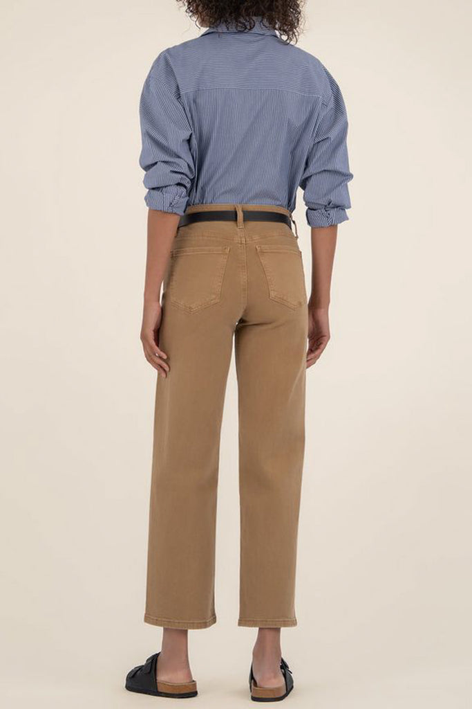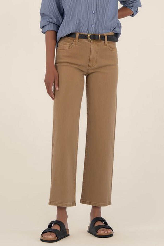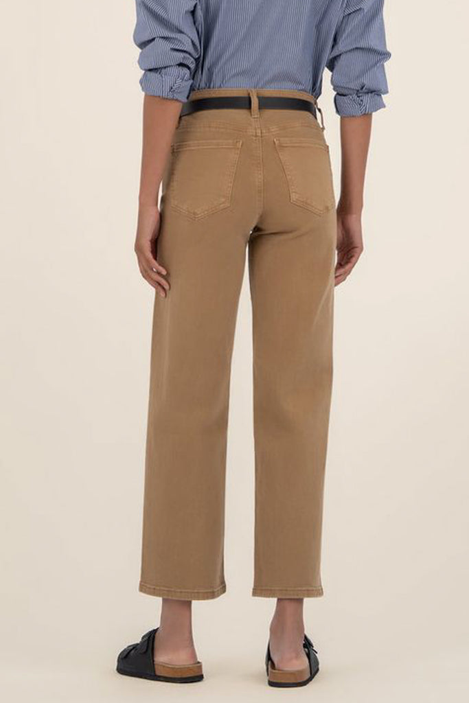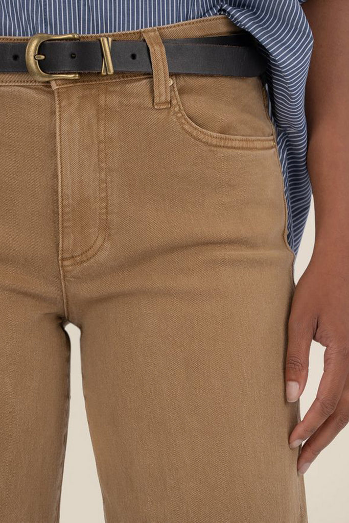 Personify Shopmodern and fresh feeling jeans in a rich caramel color. pants have a high-rise fit and feature a structured shape, a wide leg silhouette with a kick flare look, cropped length, and a finished hem. pants make a versatile staple that’s chic, modern, and effortlessly easy to style. note: jeans run about one size big; consider sizing down.