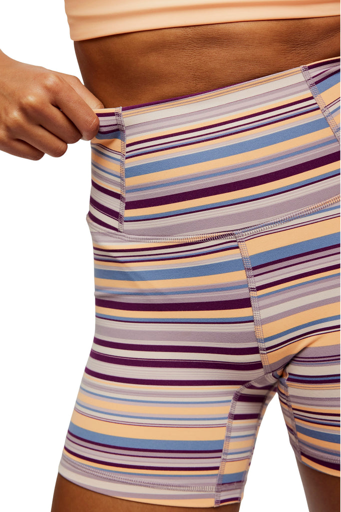 Personify Shopfree people do-it-all bike shorts in a colorful striped design. pull-on shorts have a high-rise waist with a form-fitting silhouette. stretchy shorts feature a buttery soft fabrication, wide elastic waistband, breathable design, and seam detail throughout. an activewear essential, these go-to shorts are perfect for all your favorite workouts.
