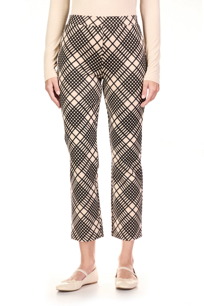 Personify Shopthe best pull on crop pants, this time in a pale pink and black plaid pattern. cute pants feature a high rise fit with two faux front pockets and functional back pocket. pants can be dressed up or down for a variety of looks. pants make comfortable and professional work wear and can also be worn as leggings with tee or short dress.