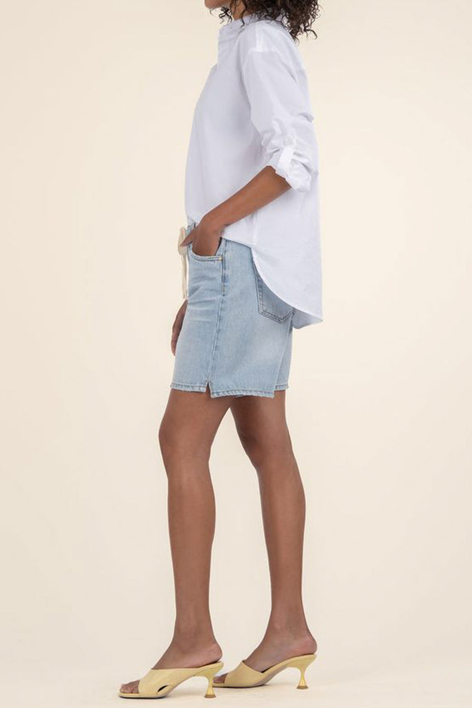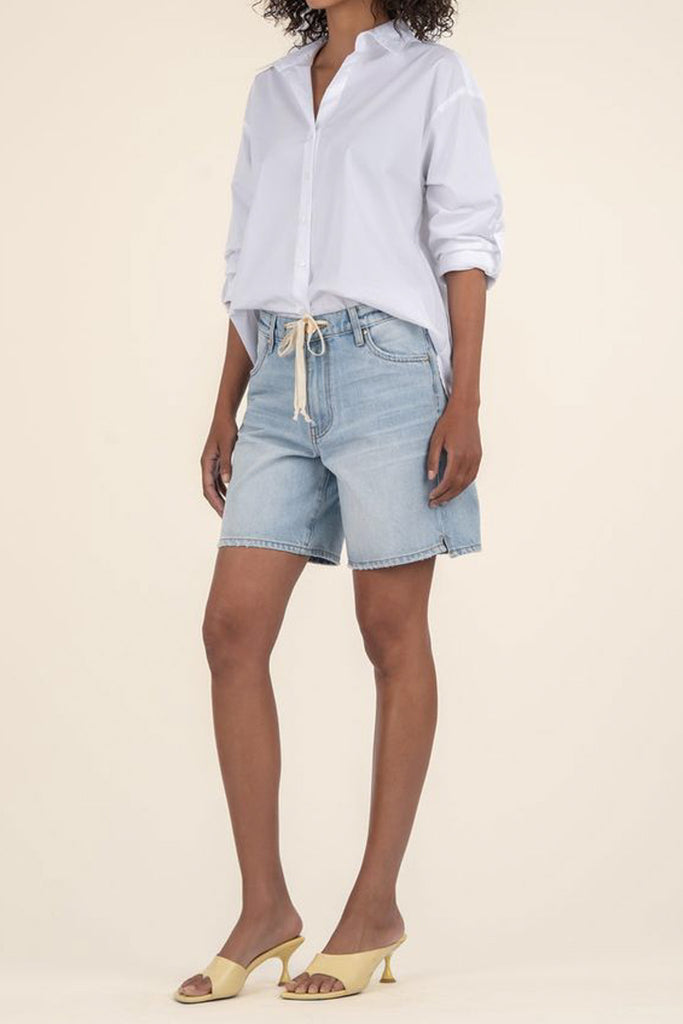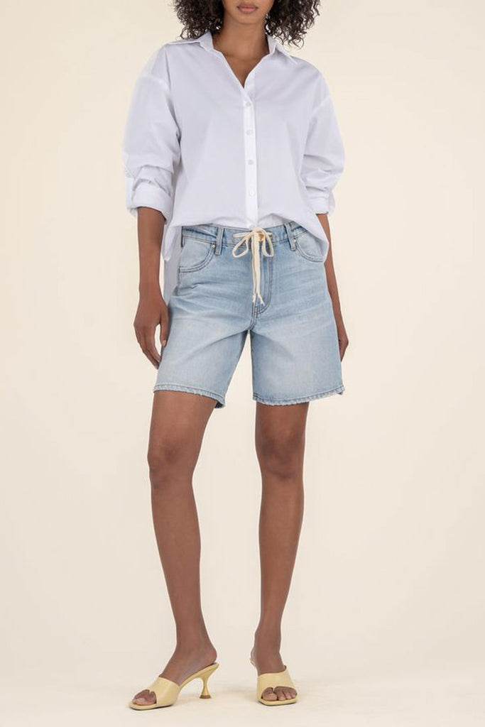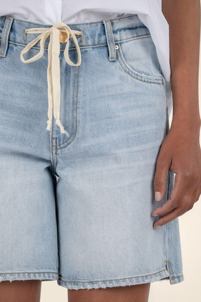 Personify Shopcomfortable high rise shorts in a casual light blue denim wash. designed for comfort and style, shorts have a relaxed silhouette, longer length, and tie at waistband for an adjustable fit. laid back shorts are the perfect addition to your wardrobe this summer. note: shorts run big, so consider sizing down.