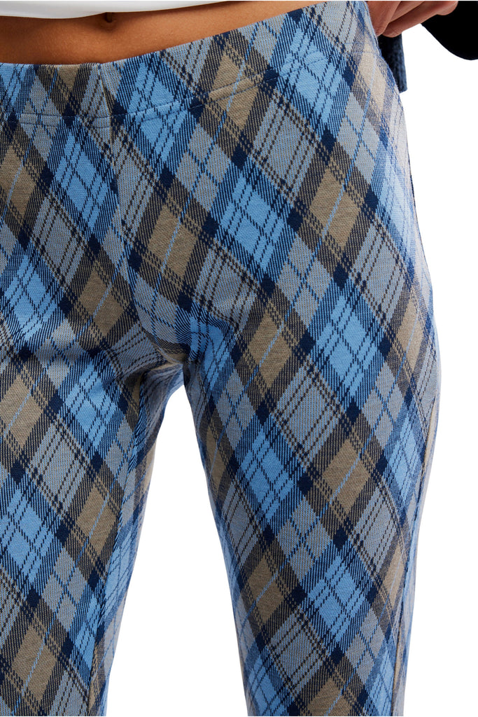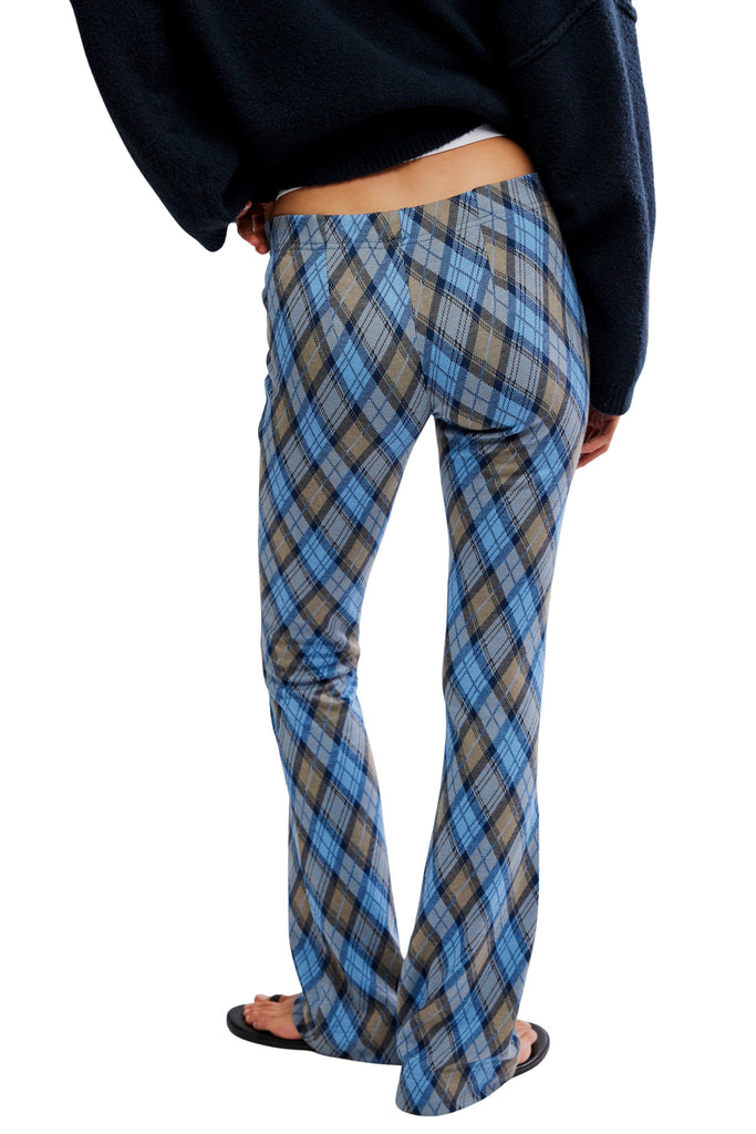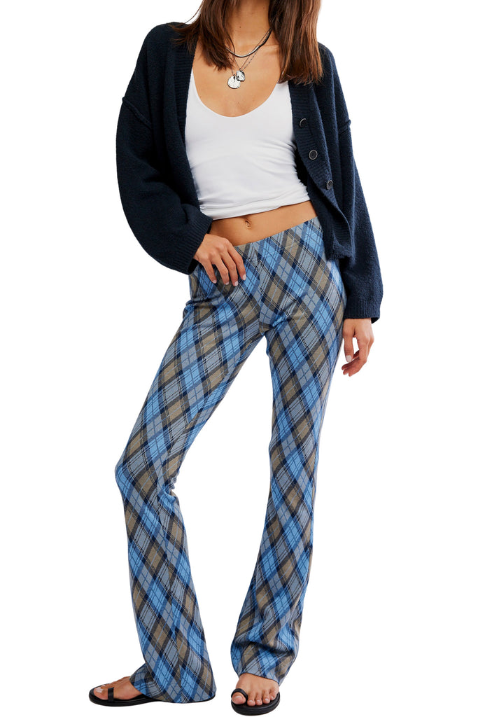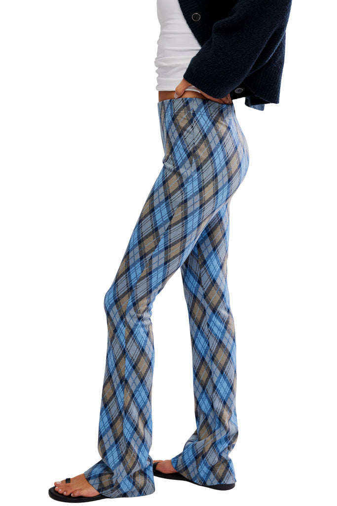 Personify Shopfree people knit pants in a perfect periwinkle blue argyle plaid. pull-on pants are stretchy with a mid-rise fit and feature a soft knit fabrication and a flattering flared silhouette. pants can be dressed up or down for a variety of looks.