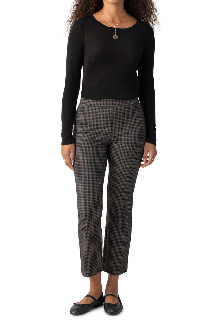 the best pull on crop pants, this time in a shadowy black and grey plaid pattern. cute pants feature a high rise fit with two faux front pockets and functional back pocket. pants can be dressed up or down for a variety of looks. pants make comfortable and professional work wear and can also be worn as leggings.
