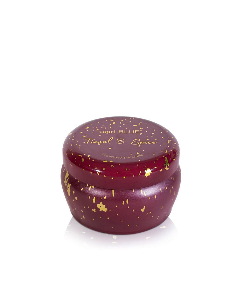 Personify Shopsparkle and shine this holiday season with this petite tin candle from capri blue. metallic foil accented mini tin packs a festive and fragrant punch. candle makes a wonderful gift or stocking stuffer.