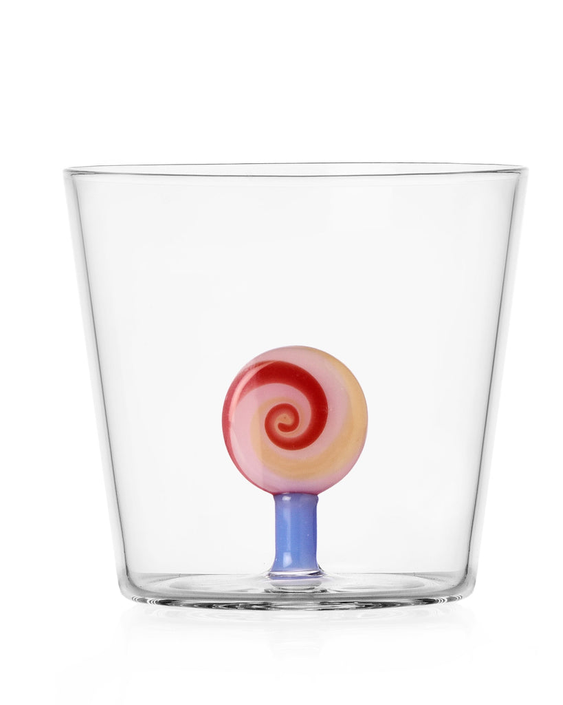 Personify Shopbeautifully made glass tumbler from ichendorf. glass tumbler features a sweet handmadered and pink swirled lollipop inside. tumbler is designed by alessandra baldereschi.