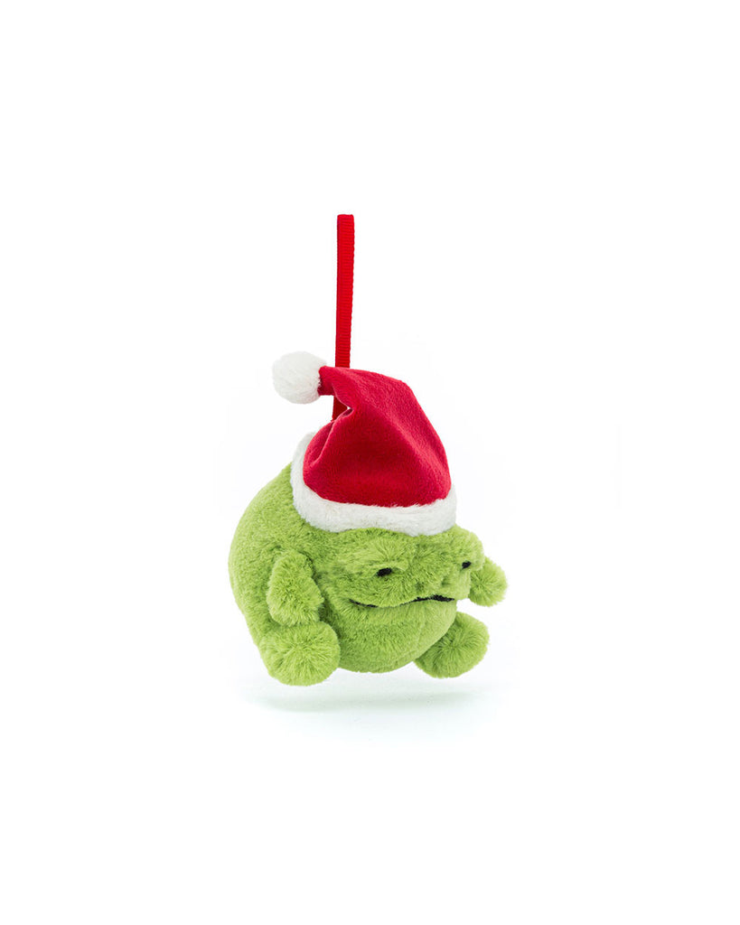 Personify Shoptoo much christmas cheer? mix in the ricky rain frog ornament. this iconic frog wears a crimson hat with cream trim and pompom and fixes on with a red textured ribbon. with his trademark grumpy embroidered mouth, this mini ricky quirks up any tree. limit two per customer.