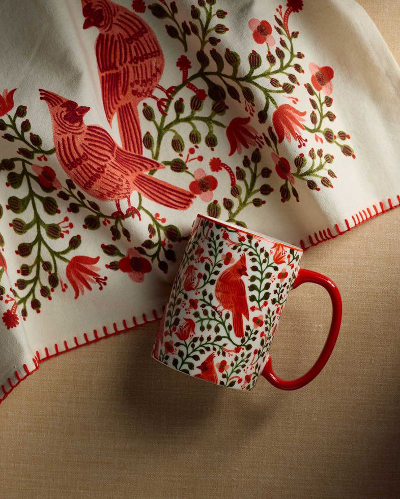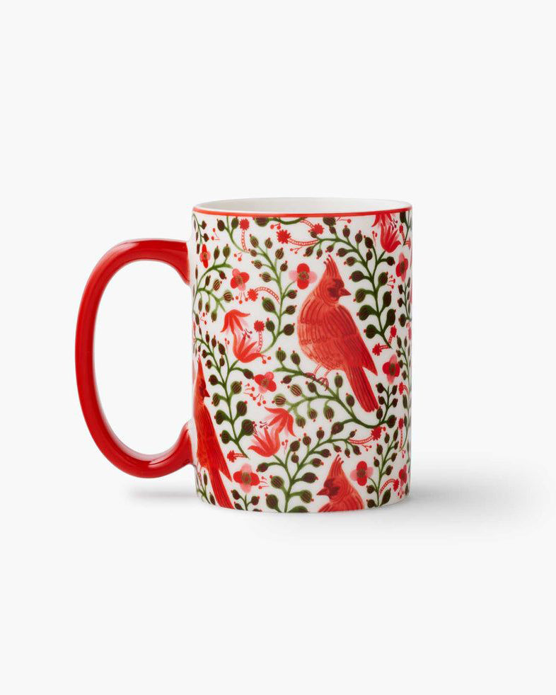 Personify Shopwith elegant cardinal illustrations and a red handle and rim, this seasonal porcelain mug from rifle paper co brings a bit of cheer to the morning routine. it makes a thoughtful gift!
