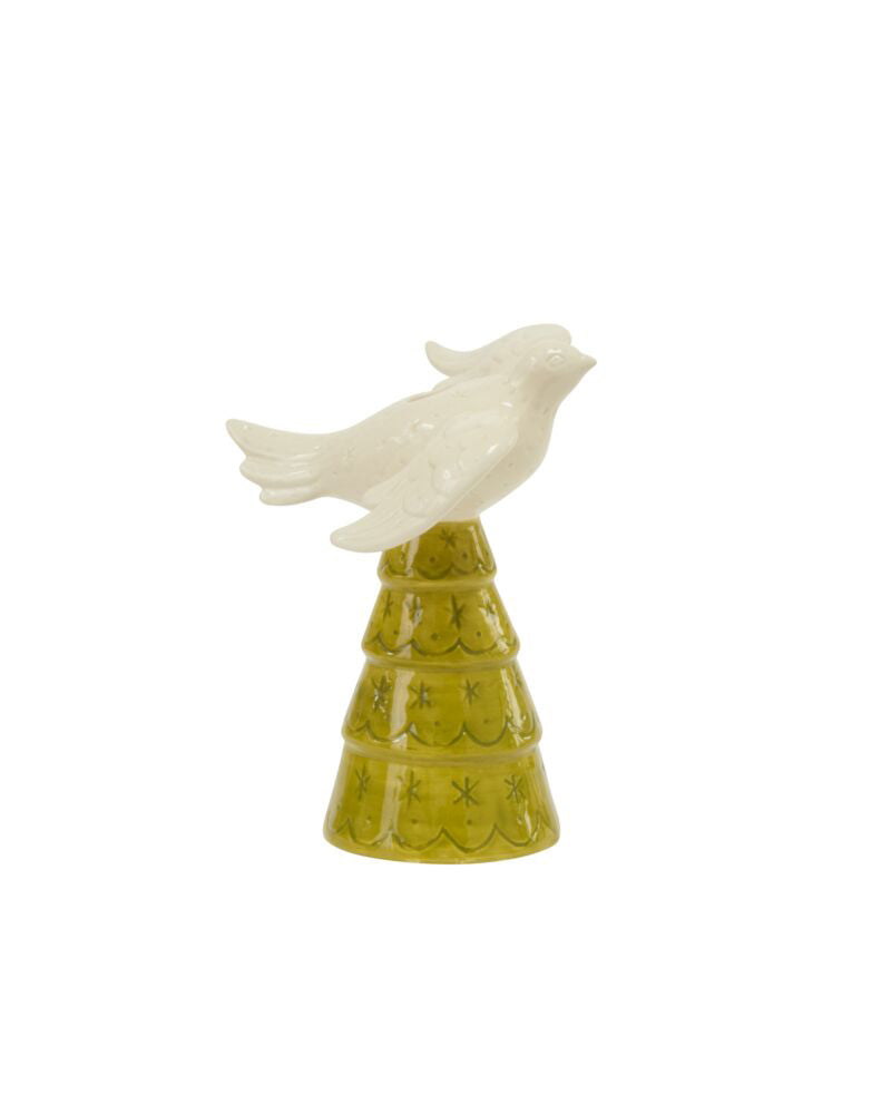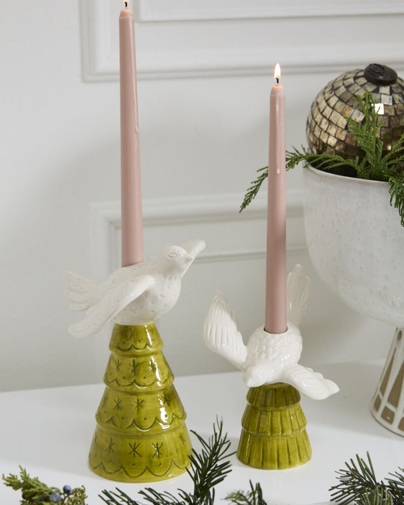 Personify Shopbrining a peaceful and vintage inspired look to your holiday decor with this dove tree candle holder. charming ceramic taper holder features a white dove atop a decorative bold green christmas tree. with a glossy finish and hand-painted details, candle holder can be used as a decorative figurine as well as a functional candleholder for holiday hued taper candles.