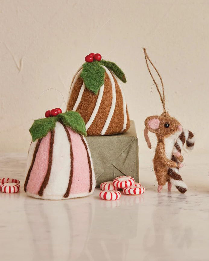 Personify Shopbeautifully decorated cake ornament in the shape of a dome or gumdrop. wool felt ornament will add a bit of sweet charm to any christmas tree. ornament is available in two styles.