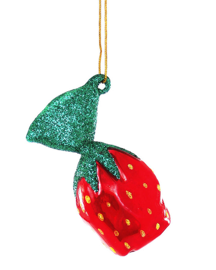 Personify Shopadd some nostalgic fun to your christmas tree with this strawberry candy ornament! retro-feeling ornament comes in shiny red and features a glittery green top with shimmery gold polka dots.