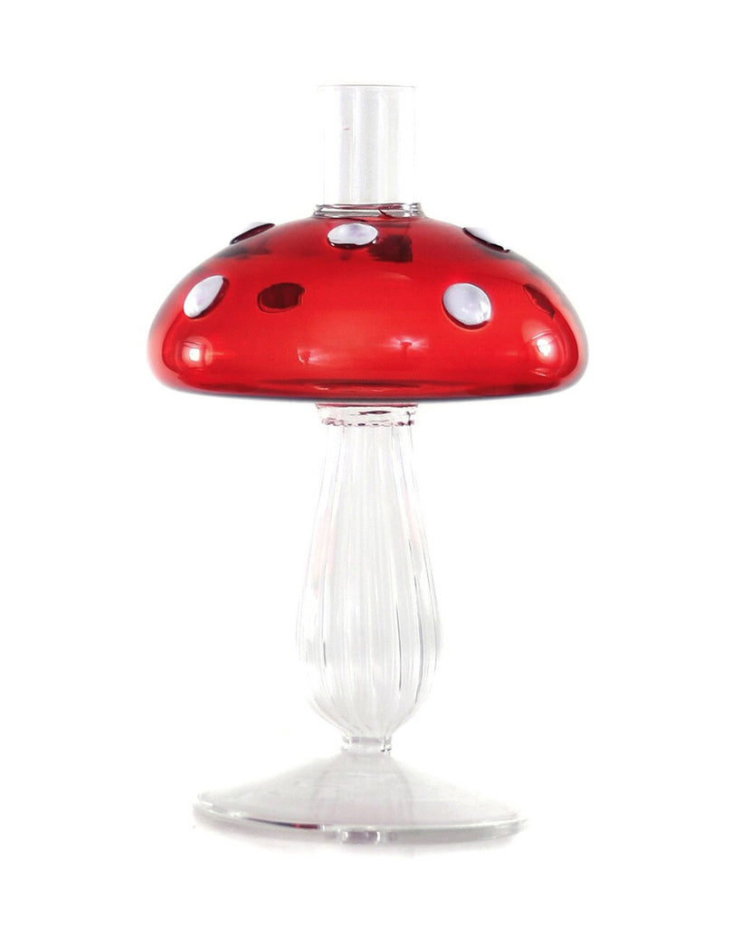 Personify Shopadd a whimsical, woodland touch to your holiday decor with this mushroom candlestick. glass candle holder comes in the shape of a red mushroom and features a slender design and white polka dots. candlestick is perfect for holding your favorite taper candles and can be used as a fun, year round accent.
