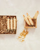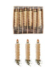 set of six ornaments in the shape of a twisted taper candle. ornament has a clip-on design for easy securing to your tree. each ornament features a vintage-inspired design complete with sparkles and a silvery tinsel base.