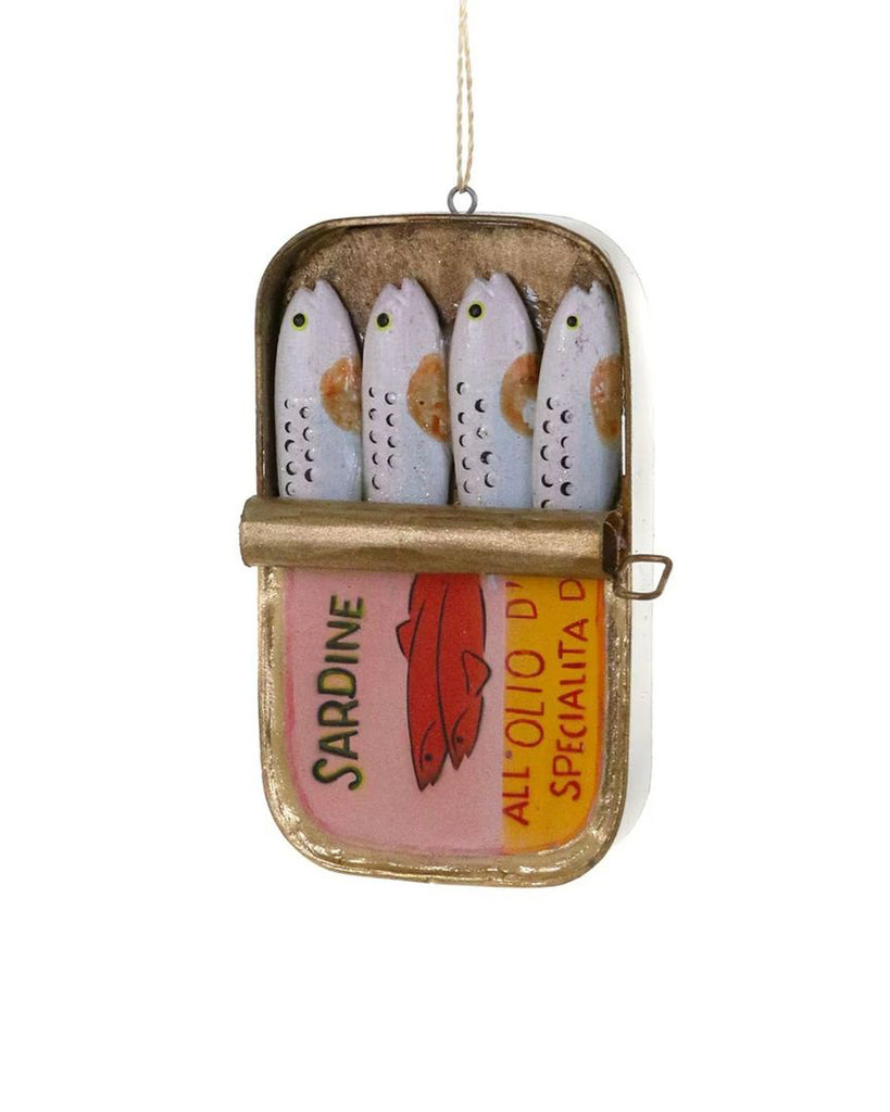 Personify Shopcelebrate a love of tinned fish with this colorful ornament. lightweight resin ornament features an open tin of sardines with vintage-feeling details and italian script.