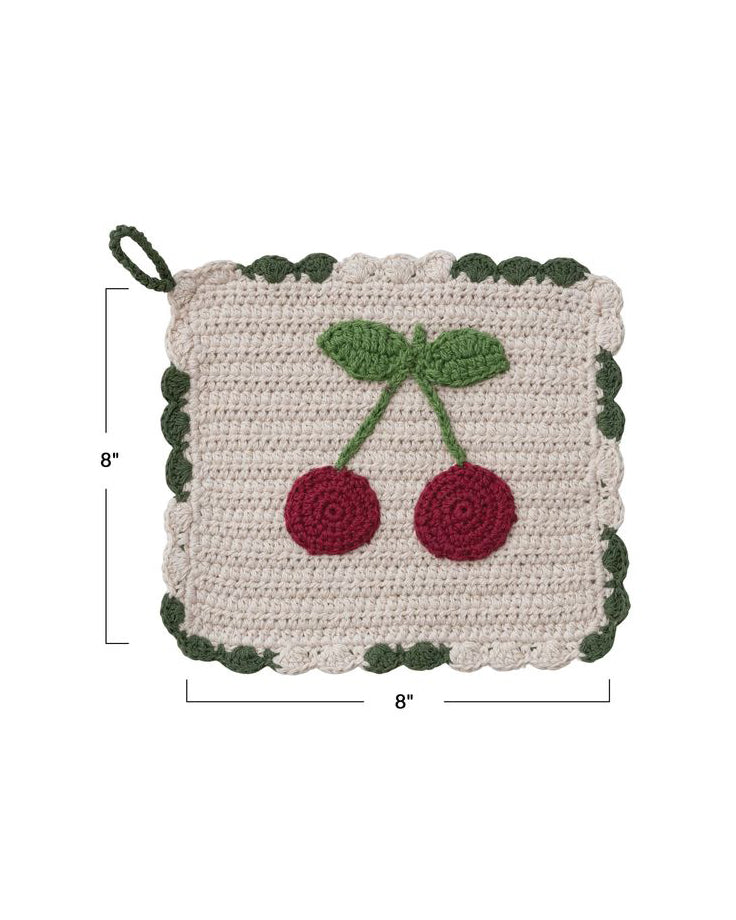 Personify Shopprotect your surfaces with this cute crocheted potholder. handmade potholder is vintage-inspired with a red cherry design and sweet scalloped edging.