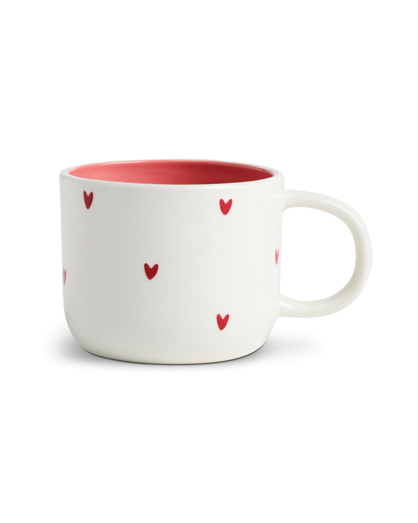 Personify Shopwhite mug with sweet hearts, a pink interior, a cheeky smile, and lots of personality. generously sized mug makes a thoughtful gift!