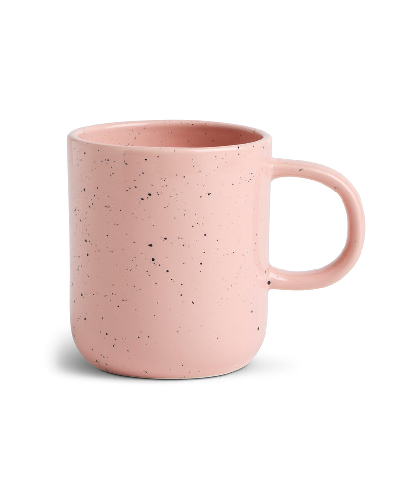 sweet pink mug with subtle speckles, a cheeky smile, and lots of personality. generously sized mug makes a thoughtful gift!