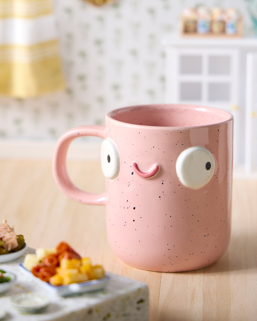 Personify Shopsweet pink mug with subtle speckles, a cheeky smile, and lots of personality. generously sized mug makes a thoughtful gift!