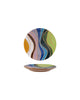 serve up small bites in style with this colorful stoneware plate. plate has a wavy, wax relief design in a rainbow of colors. coordinating mug is also available.