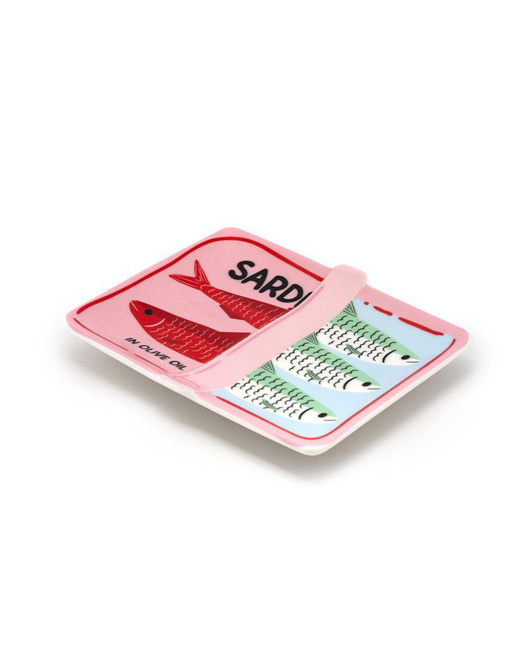 add a bit of color and charm to your space with this fun trinket tray. trinket tray has a colorful design inspired by a tin of sardines. ceramic tray is perfect for storing your jewelry, keys, and other odds and ends.