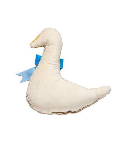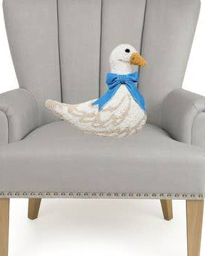 Personify Shopadd some spring vibes to your living space with this beautifully made hooked pillow. unique pillow comes in the shape of a white goose and features a bold blue velvet ribbon.