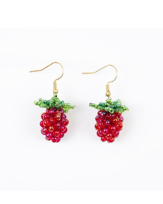from the fruit lover to the fashionista, these beautifully beaded raspberry earrings are sure to become a favorite. earrings are handmade with glass beads and will add fun pops of color to any outfit.