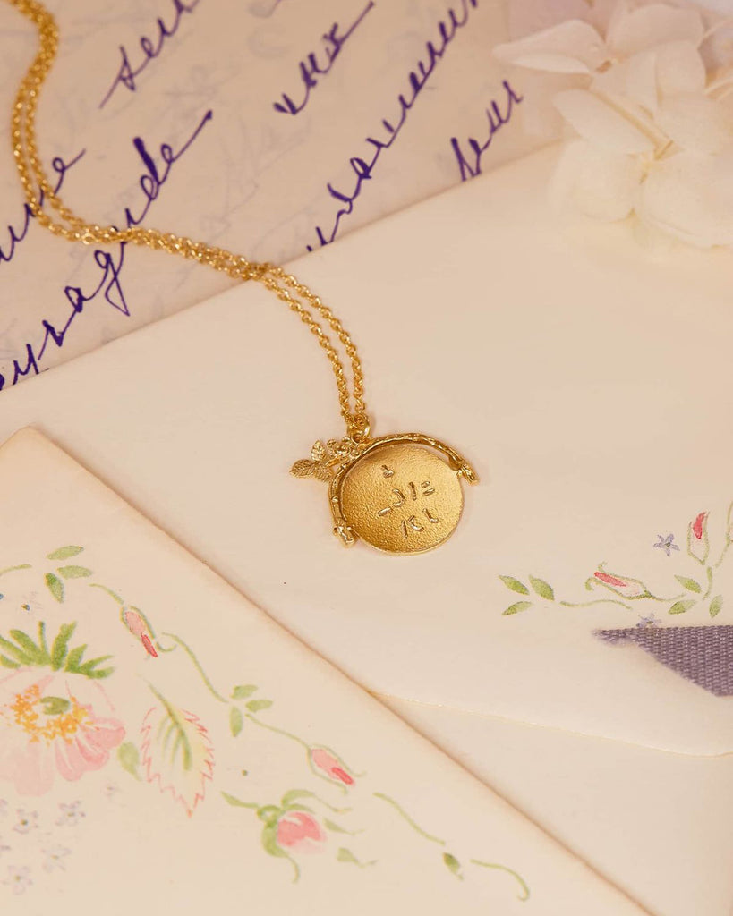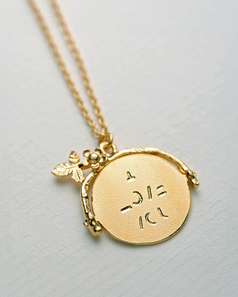 Personify Shopnecklace with a vintage-inspired design, a hidden message, and special natural detailing. spin the disc and the words "i love you" will appear in motion. special necklace is inspired by nature and handcrafted in london.
