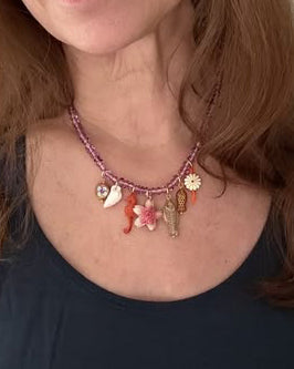 Personify Shopbeautifully beaded necklace combines lilac beads with springy floral and beachy charms for a unique look. striking necklace makes a great gift!