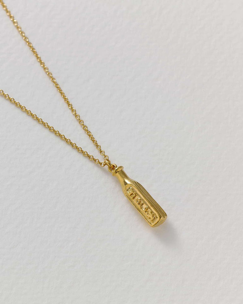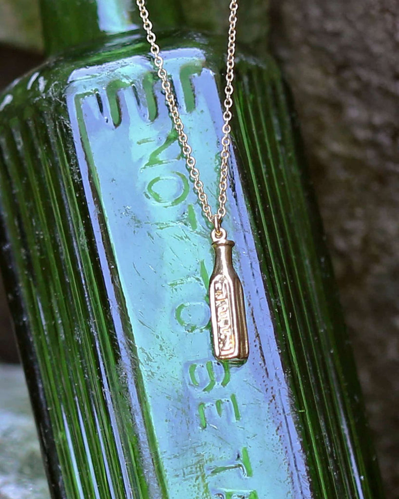 inspired by mudlarking, this necklace is a miniature copy of a real bottle found on the foreshore of the river thames. it reads "not to be taken" and the real thing would have housed poison! unique necklace is handmade in london.