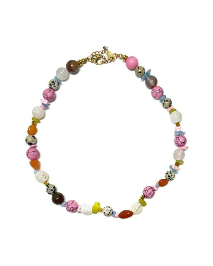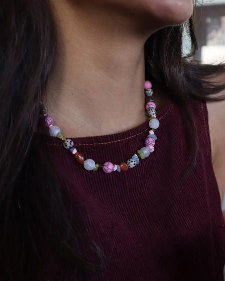 beautiful necklace featuring a colorful array of stone and glass beads. handmade necklace will add a touch of elegance to any outfit.