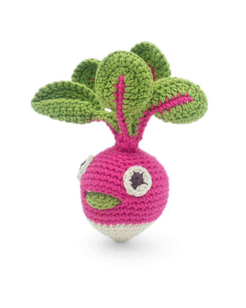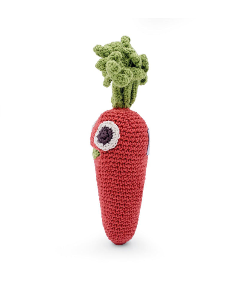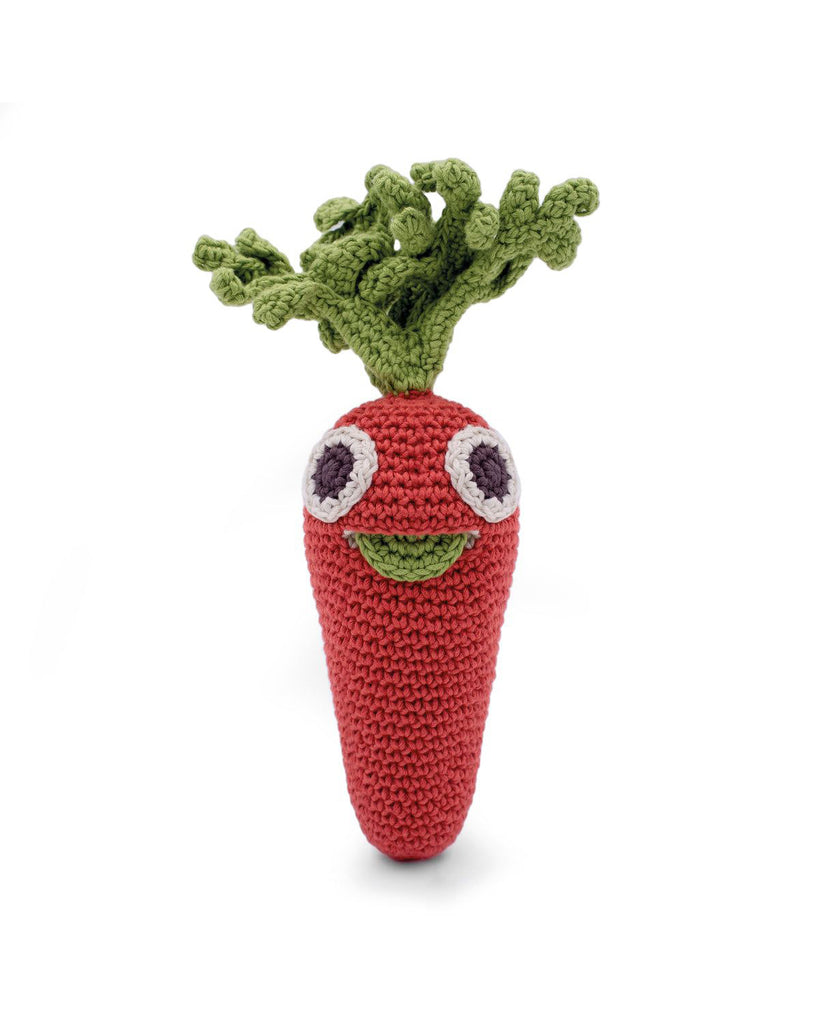 Personify Shoporiginal and sustainable baby toy in the shape of a charming and colorful vegetable. beautifully made montessori toy has a crocheted body, which stimulates baby's sensory and kinesthetic abilities. interior rattle attracts attention and play. unique, gender neutral toy makes a thoughtful baby gift.