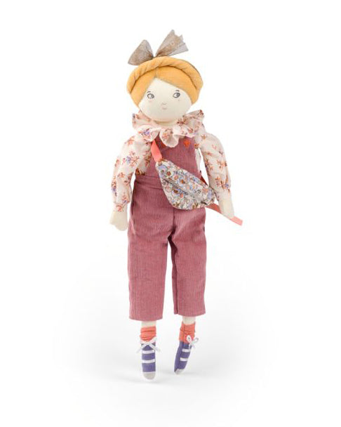 - plush doll made from cotton, polyester, metallic fibers, polyamide, and viscose