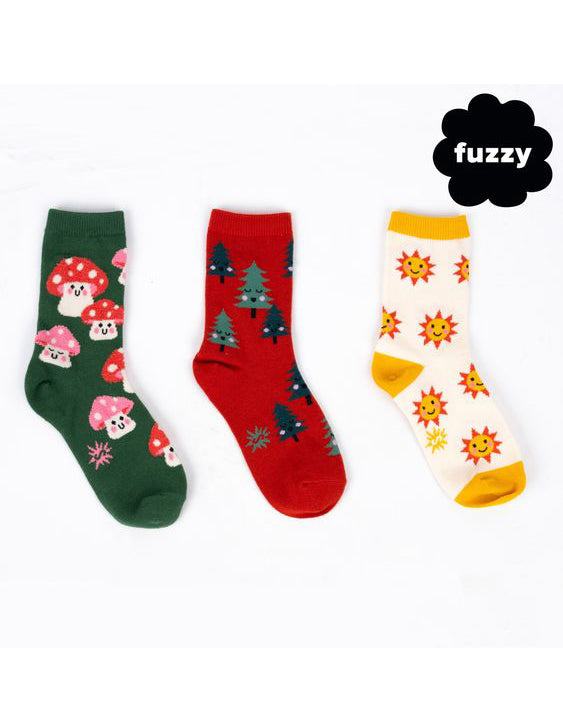 Personify Shopexplore nature's wonders with this 3 pack of patterned kids socks! their adventure-ready designs are perfect for sparking curiosity and outdoor fun. colorful and fun socks use combed cotton threads that are certified by oeko-tex standard 100, meaning harmful chemicals are left out to keep your kid's skin safe and happy. socks come in three unique designs with fuzzy details throughout.