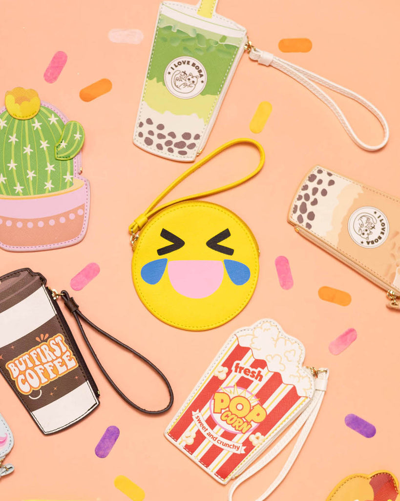 Personify Shopcute wristlet in a fun and unique shape. each wristlet has a zip top and an easy to carry wrist strap. wristlet is card-sized, making it the perfect grab-and-go wallet! wristlet is available in three styles.