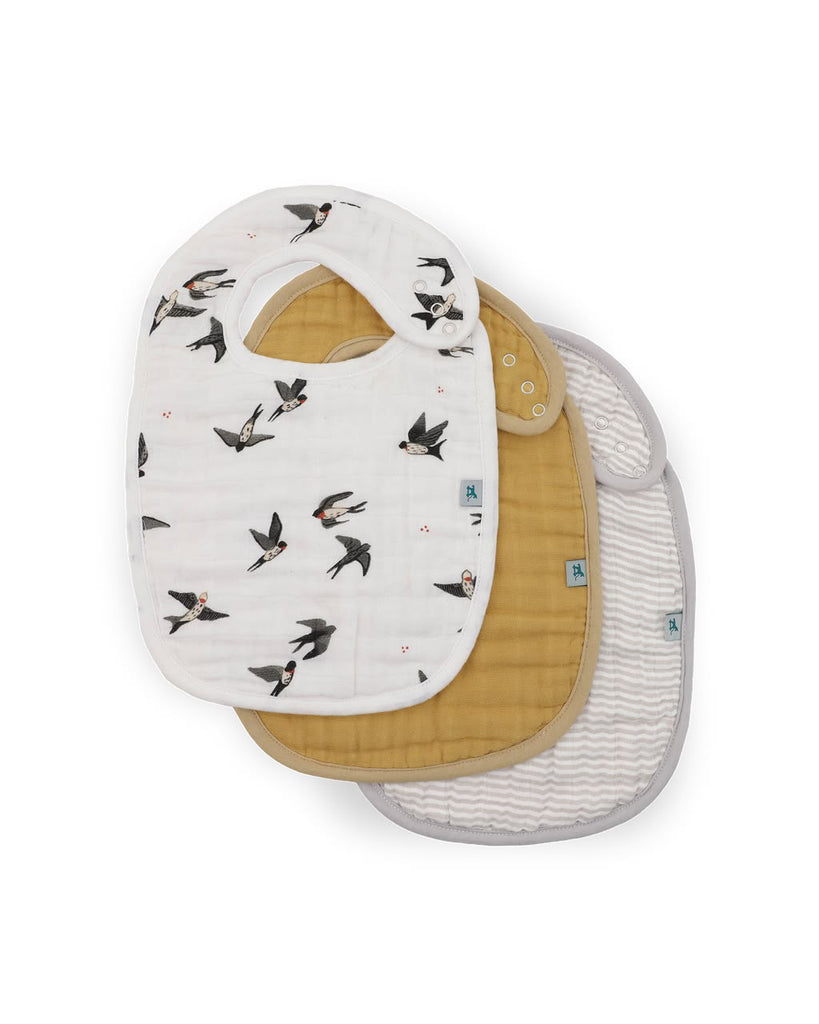 Little Unicornyour baby's bibs should work as hard as you do - minus the caffeine! little unicorn wove three layers of 100% GOTS certified, OEKO-TEX approved organic cotton muslin into each bib so they can soak up drool, and that oops-I-missed-my-mouth grin without breaking a sweat. bibs are soft as a cloud, lightweight enough for all day wear, and mighty enough to catch the mess!