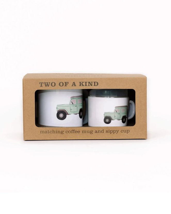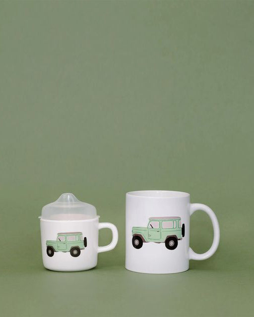 Personify Shopmama/dada and babe will be sweetly matching with this mug and sippy cup set. each cup features a classic landcruiser FJ40 in mint green. set has a classic americana vibe that kids and parents can both appreciate.set makes a wonderful gift!