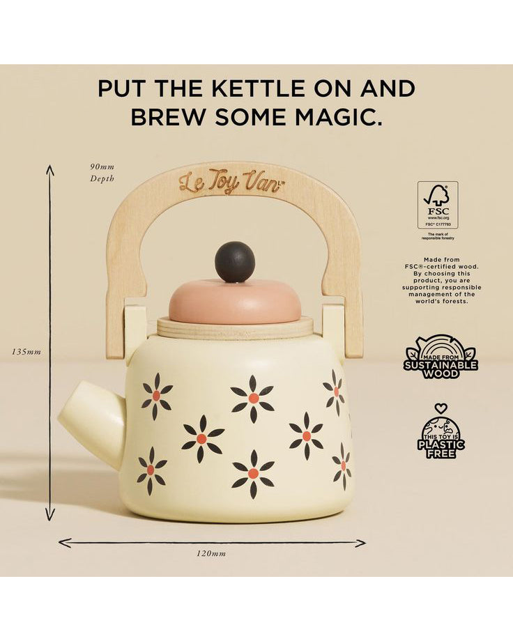Personify Shopvintage-inspired wooden kettle is a charming playtime companion that combines creativity and imagination. decorated with delicate floral artwork, this toy exudes a timeless beauty that will captivate young minds. kettle features an engraved pouring handle and removable lid, allowing for interactive play. fun and beautifully designed kettle encourages social and imaginative play.