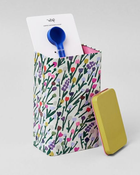 Personify Shopcoffee tin featuring a lovely floral design by rozalina burkova. tin is perfect for storing coffee (as well teas and other dry goods) and adding a touch of print and pattern to kitchen shelves. sturdy tin comes complete with a cobalt blue coffee scoop.