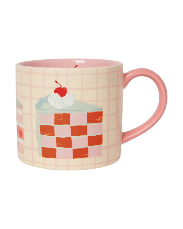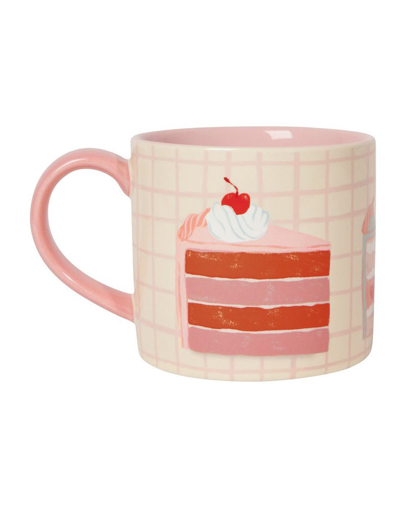 Personify Shopsweet-as-can-be mug features a pink plaid design and a colorful assortment of cake slices. mug comes packaged in a giftable box that can be used to store trinkets and treasures after use. mug makes a perfect for teacher or hostess gift.