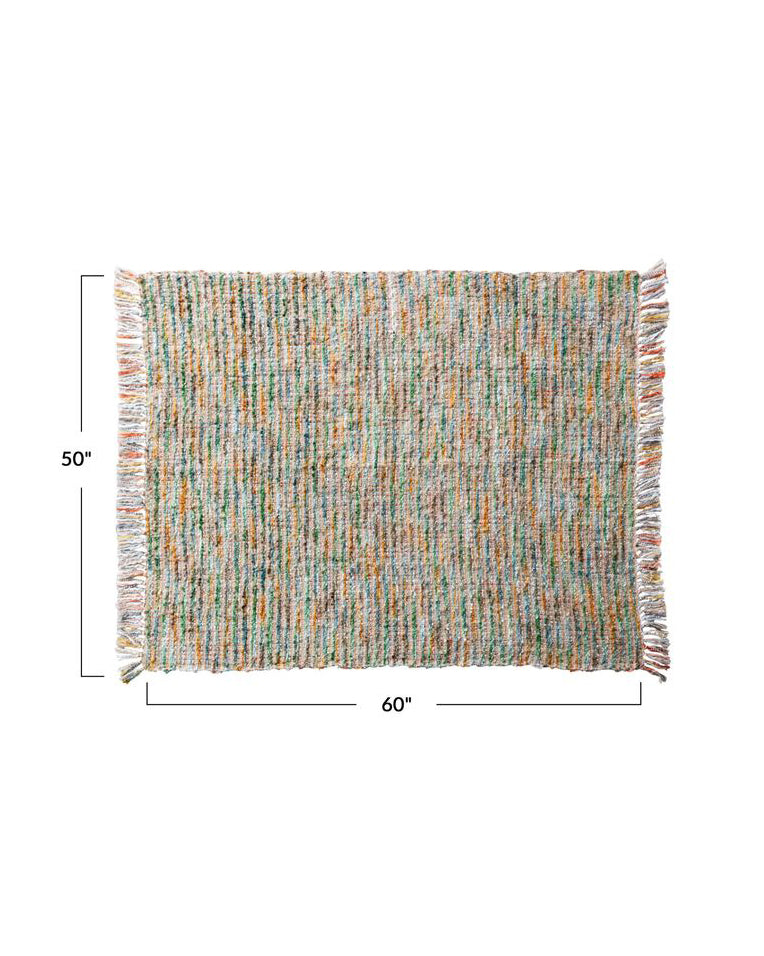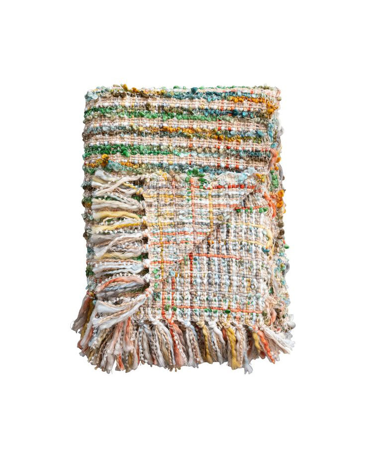 Personify Shopadd a touch of color and comfort to your living space with this colorful woven bouclé throw blanket. high-quality blanket features a variety of colors and hues and a fringe trim for added texture and charm. blanket is soft to the touch and makes a great gift.