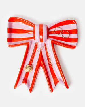 Personify Shopbeautifully made trinket tray featuring a colorful red and pink striped design and a unique shape! trinket tray makes a perfect catchall dish for jewelry, keys, and other personal items.