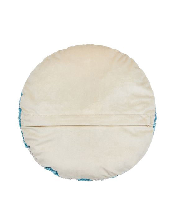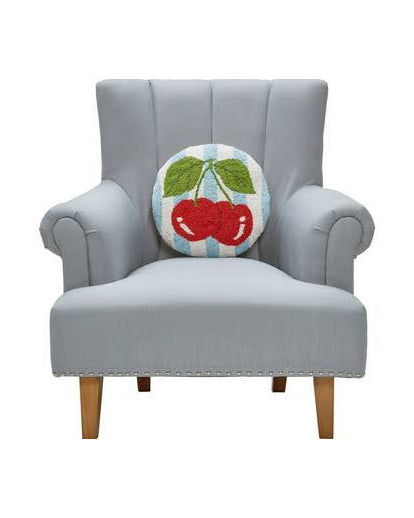 Personify Shopcircular hooked pillow with blue and white stripes and a sweet cherry design. pillow makes a unique accent for any space.