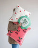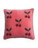 Personify Shopgorgeous pink cotton velvet pillow with hand-beaded cherry details. pillow has charming details, like bold red and green cherries and tufted fringe. it makes a lovely accent for any living space.