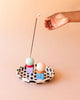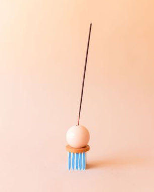 Personify Shopthis is a simple, yet bold way to elevate your incense burning experience. colorful wooden incense holder has a painted globe with a striped base.