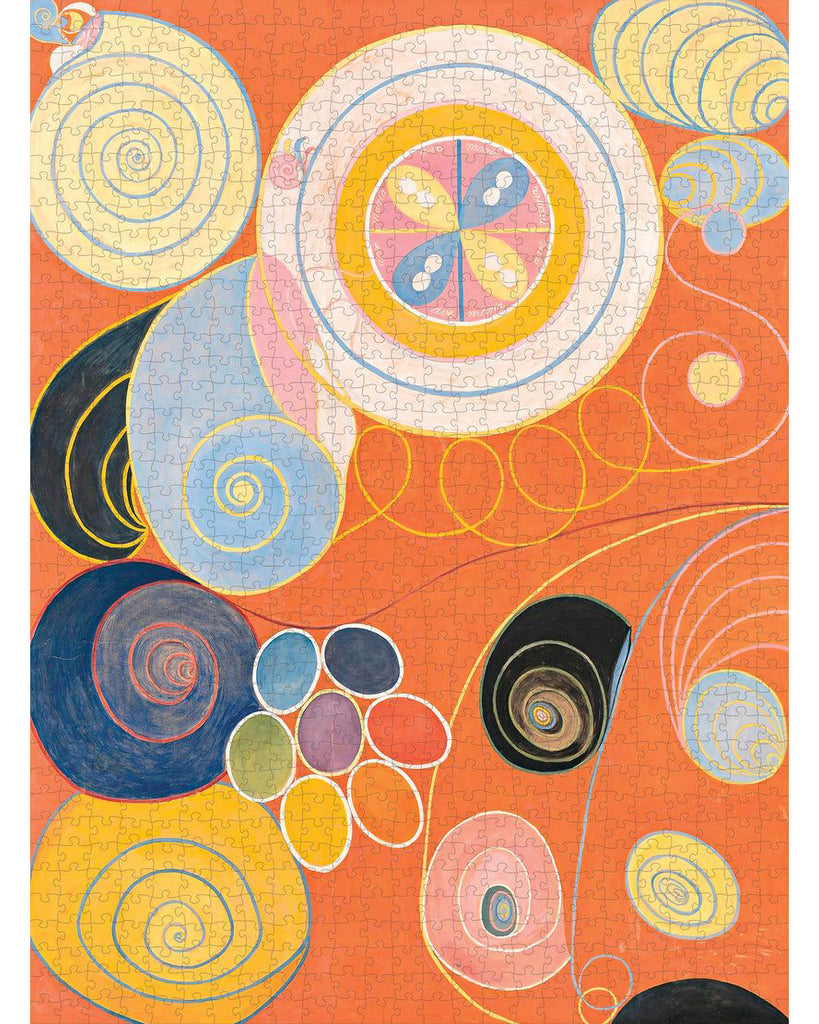 Personify Shopan artist both of her time and well ahead of it, hilma af klint was a rare original. years before modernist pioneers like mondrian and kandinsky, af klint was breaking ground with colorful, energetic compositions that veered away from the figurative. her group of paintings called the ten largest focuses on the stages of human life; no. 3, youth, featured on this 1000-piece puzzle, is aswirl with botanical elements and painted words, as she attempted to reconcile art, science, and religion through her brilliant artwork. luxury puzzle was crafted with attention to detail and made with ribbon-cut thick board for a snug fit and minimal dust.